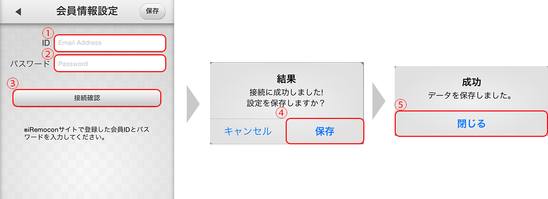 ※会員登録の方法については<応用編>「iRemocon会員登録について」を確認してください。