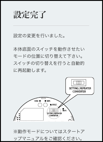 表示された画面にしたがって、動作させたいモードに切り替えてください。